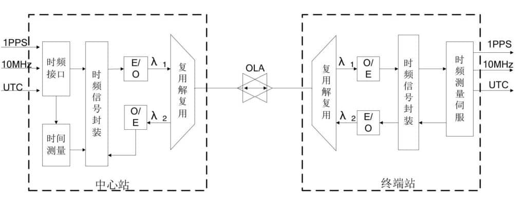 Die hochpräzise Zeitübertragungsanlage T900-P ist ein hochpräzises Zeitmesssystem, das auf einer WDM-Verbindung basiert. Das System ist in zwei Teile unterteilt: die Zentralstation und die Endstation. Die Timing-Zentralstation besteht hauptsächlich aus einer Zeit-Frequenz-Schnittstelleneinheit, einer Zeit-Frequenz-Messeinheit, einer Zeit-Frequenz-Signalkapselungseinheit, einer optisch/elektrischen und einer elektrisch/optischen Umwandlungseinheit sowie einer Wellenlängen-Multiplexing- und Demultiplexing-Einheit. Die Timing-Endstation besteht aus Wellenlängen-Multiplexing- und Demultiplexing-Einheiten, optisch/elektrischen und elektrisch/optischen Konvertierungseinheiten und Zeit-Frequenzmess-Servoeinheiten. Das Zeitmesssystem nutzt die klassische Zweiwege-Zeitvergleichsmethode und stützt sich auf den optischen Faserkanal (DWDM-Wellenlängenkanal), um eine hochpräzise Zeit-Frequenz-Synchronisation zu erreichen. Das Gerät läuft stabil und ist sehr störungsresistent und kann eine Synchronisationsgenauigkeit von 50ps über 100km erreichen.