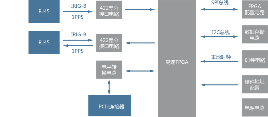 The T220-B PCIe B-code timing card provides high-precision time information for computer systems. Using B-code time information as a time reference, the card transmits time information and timer interrupt signals to the computer via the PCIe interface, synchronizing computer software time with the card's time. It supports two B-code signal inputs and automatically switches to the other B-code source if one fails. Even if all reference time sources are disconnected, the card's internal high-stability crystal oscillator maintains continuous operation within a specified accuracy range for a specified period of time, thus continuing to provide a relatively accurate time signal to the computer system, significantly improving the product's reliability.