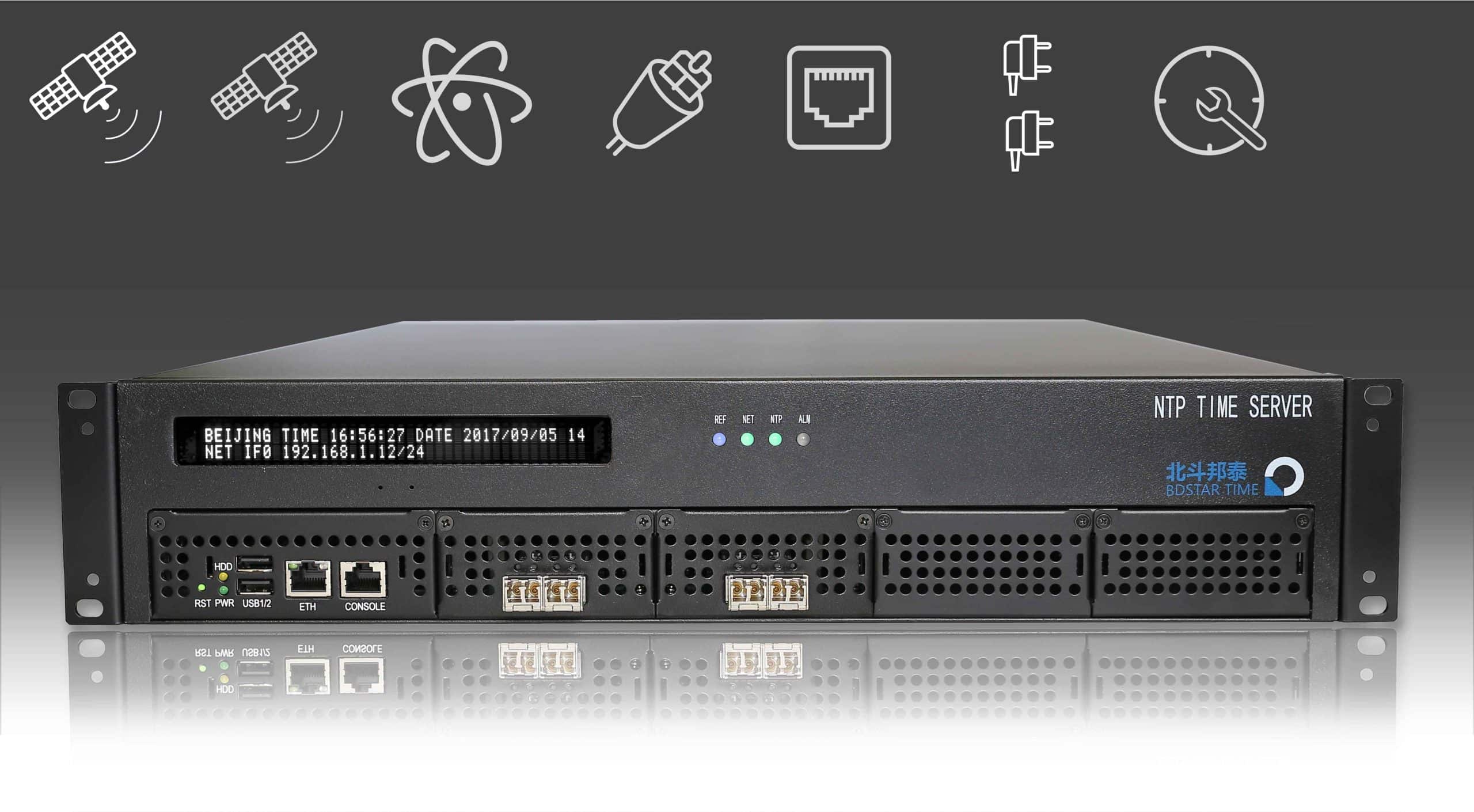T600-LBDRBP-G(外国貿易バージョン)[GNSS+ルビジウムクロック+複数の10Gb光ポート+デュアルパワー] NTPタイムサーバーはNTP/SNTPをサポートし、高精度、大容量、安全なタイミングを提供します。マルチコンステレーションGNSSとルビジウム原子時計を組み合わせ、ロストロック・ホールドオーバー・タイムキーピングとスムーズなロックバックを実現。アンチジャミング/アンチスプーフィング検出アラーム付き。TOD、10MHz、1PPS出力とロギングをサポート。ウェブ統一管理、サポート権限監査、アラーム、ファイアウォール、SNMP/カスタムMIBアクセスによるネットワーク管理、リモート操作とメンテナンス、バッチ監視を提供します。政府、防衛、金融、データセンター、産業オートメーションシナリオに適しています。