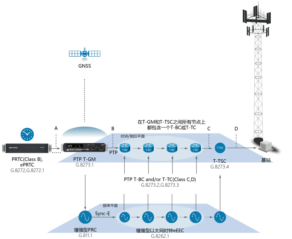 支持 Class D(5 纳秒)高精度授时,满足 5G 回传与工业网络对时精度的严格要求。